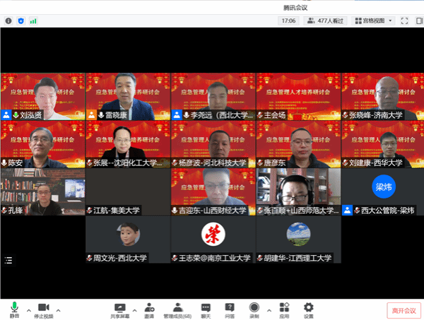 为进一步优化应急管理专业人才培养方案,提高应急管理人才培养质量,4月2日,樱花动漫 应急管理教研室组织全体教师参加了由应急管理本科专业高校联盟主办、西北大学应急管理学院承办的线上“应急管理人才培养研讨会(2022)”。会议由西北大学应急管理学院院长雷晓康和西北大学公共管理学院副院长李尧远主持,来自西北大学、中国人民大学、南京师范大学、山西师范大学等高校的25位专家学者就应急管理专业人才培养方案进行了汇报与交流。