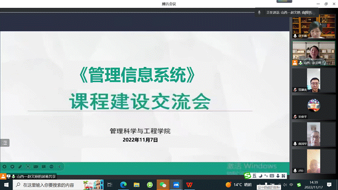 为持续推进一流课程建设,提高课程建设水平,提升课程改革速度和质量,11月17日上午,樱花动漫 组织召开《管理信息系统》课程建设线上交流会。会议特邀智慧树课程顾问赵文婷老师和技术指导谭灏亮参加,会议由课程负责人邱玉霞老师主持,学院教学副院长荆树伟,课程团队成员宋俊平、张红兵和曲国华等老师参加会议。
