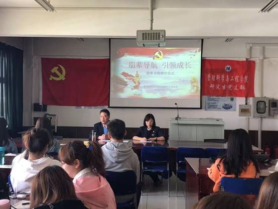 首先由支部书记介绍了“朋辈导航引领成长”工程,根据“专业相近、性别相同、学生党员联系学生干部”的原则,在学业指导、校园环境及设施的熟悉及使用、安全教育、生活服务、活动引导、心理关怀等方面为新生尽可能提供指导和帮助,鼓励和引导新生积极向党组织靠拢,将自己在大学时期获得的真切生活与学习经验传授给新生,帮助这一个个“当初的自己”少走弯路。随后由支部书记宣读聘任人员名单并由学院党委书记为学生党员及积极分子颁发了聘书。
