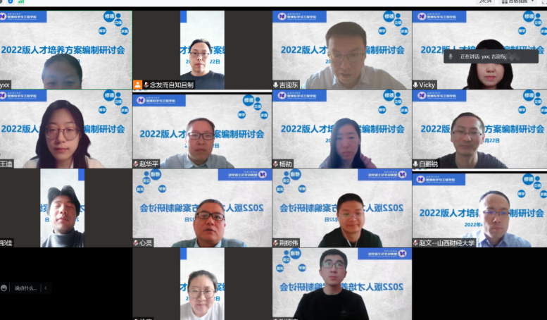 通过线上方式召开2022版人才培养方案编制工作研讨会,会议由学院教学副院长主持,学院院长、教学指导委员会主任、各教研室主任、教研室副主任、专业负责人、分团委书记和教学秘书参会。