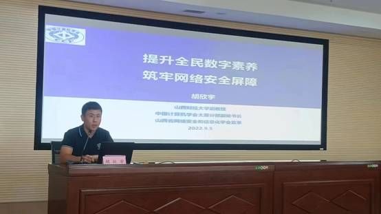 胡欣宇副教授受邀参加启动仪式并作题为《提升全民数字素养,筑牢网络安全屏障》的专题讲座。阳泉市委宣传部、市委网信办、市教育局、市工信局、市公安局、中国人民银行阳泉市中心支行、市总工会、团市委、市妇联等主办单位负责同志及市直各有关单位、国有企业、市级新闻媒体等相关负责人参加启动仪式和专题讲座。
