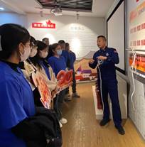 本次活动邀请“太原好人”见义勇为奖获得者、学府站指导员刘涛为大家讲述传承雷锋精神的故事,并由消防大队秦班长担任讲解人,带领同学们走进消防科普馆,讲解消防救援的重要意义和专业知识,近距离“解密”消防枪炮、供水器具、安全绳、切割机、液压钳等消防应急救援装备的工作原理和适用场景,并引导学生进行消防器械的模拟操作。