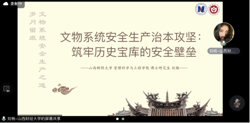 刘杨博士以《文物系统安全生产治本攻坚:筑牢历史宝库的安全壁垒》为题,以文物系统的安全事故案例为切入点,表明根据文物保护工作的实际情况制定相应的治本攻坚行动方案至关重要,随后通过解读文物系统安全生产治本攻坚的主要任务,指出消防安全仍是文物系统安全生产治本攻坚的重点。山西财经大学樱花动漫