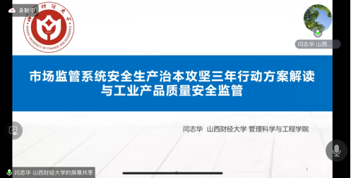 闫志华博士以《市场监管系统安全生产治本攻坚三年行动方案解读与工业产品质量安全监管》为题,从国家抽检和地方抽检两个角度梳理了我国工业产品质量安全监管现状,随后对市场监管系统安全生产治本攻坚三年行动方案进行解读,指出当前市场监管系统将向着优化质量监管机制模式,健全法规标准体系,加强科技支撑的工作目标发展。山西财经大学樱花动漫
